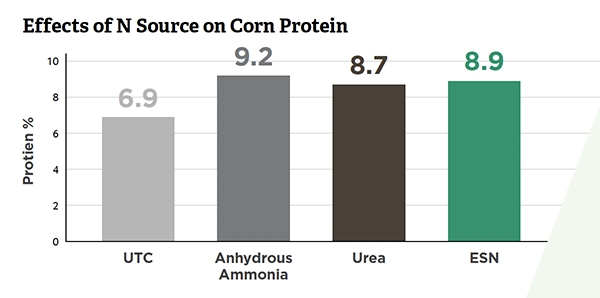 A two year Missouri study demonstrates how ESN can increase protein levels in corn. ESN protects nitrogen (N) from loss inside its unique protective coating and supplies N to the crop when it is needed. The result is increased corn yields and protein.