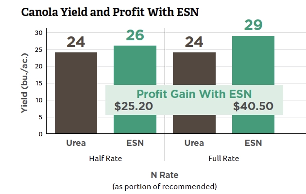 ESN out-yielded urea applications by three bu/acre at the half rate and by five bu/acre at the full rate.